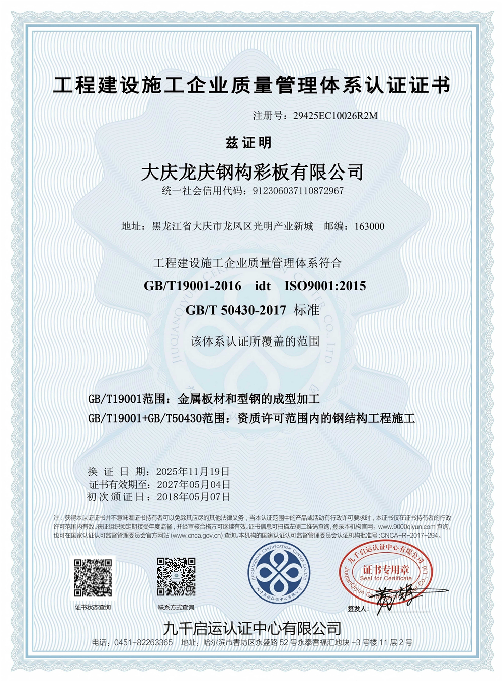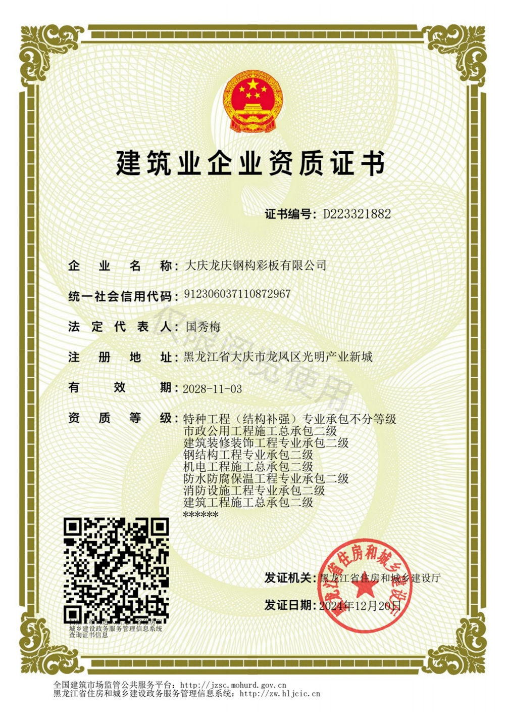 拥有钢结构制造一级、钢结构承包一级、施工总承包二级